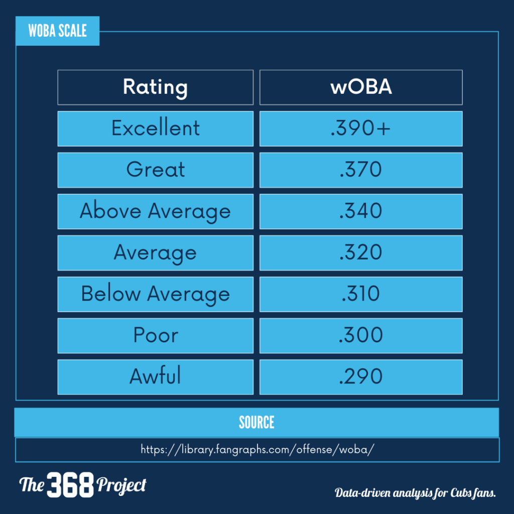 - the Cubs hit .316 wOBA when those plate appearance outcomes tracked in OBP are weighted to their actual value in producing runs